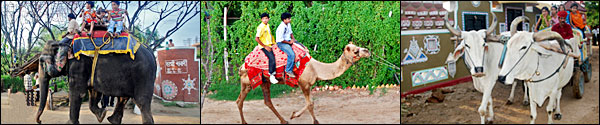 The most popular ride at Swad Ri Dhani is on camel back. Take this ride to get a bird's eye view of the entire scene and experience the thrill, especially when the animal rises from the ground and settles down to let you off its back.